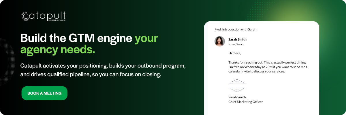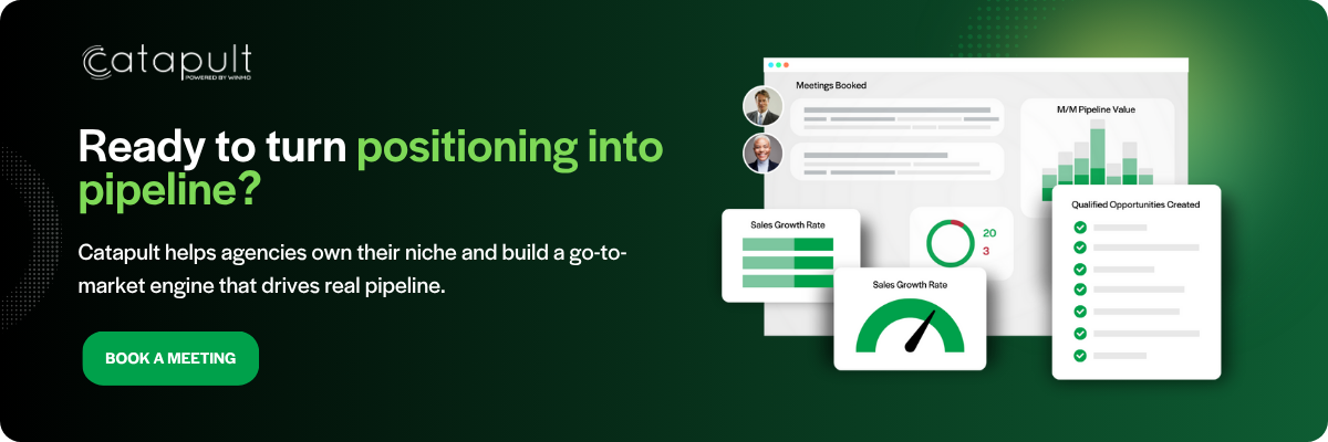 At Catapult New Business, we help agencies sharpen their positioning, build outbound engines that reflect it, and create real movement in the pipeline. If you’re ready to put a stronger positioning strategy into action, book a strategy call with our team and let’s build your next stage of growth.